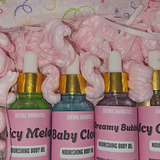 Ingredients: Grapeseed oil, almond oil, fragrance oil, mica powder